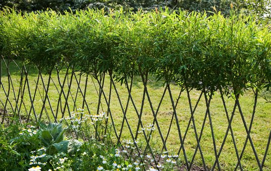 Hegn og espalier med hindbær, brombær, ærter bønner eller frugttræer er velegnede til at skabe rum og oplevelser i haven. Brug fx hegn og espalier på en måde, så det ikke er muligt at overskue hele haven på en gang, og du derfor bliver overrasket af noget nyt, når du bevæger dig rundt i haven.