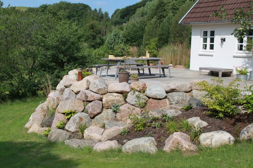 Ejer: Sofie Folden Lund. Sofie fik terrassen i fødselsdagsgave af sin far, der med sine bare næver selv har opført den på et par dage, mens familiens mindste, Pelle, på dengang tre år, slæbte jord og underholdt med uafbrudt snak.