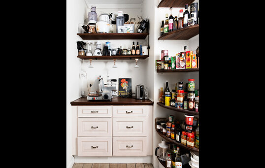 - Hylder i stedet for skabe til mine krydderier, olier og andre madvarer