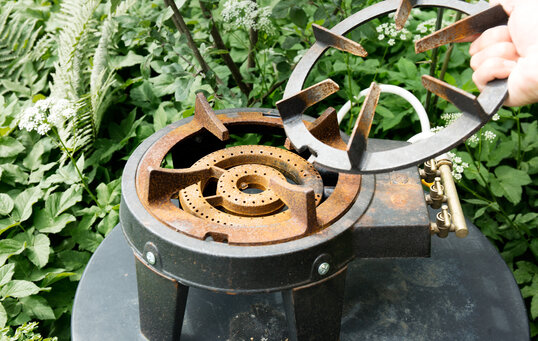 Gaskomfur er det eneste Mik Schack kan lave mad på. Foto: Lisbeth Holten