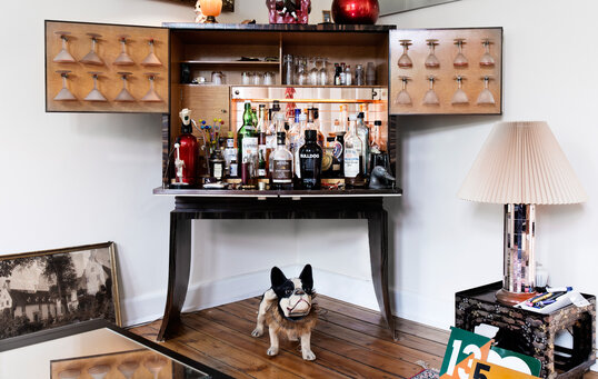 Mik Schack synes også, du bør droppe alle forestillinger om et blankpoleret køkken i det nyeste design. Han kan selv godt lide at proppe kunst og ting med en historie ind i køkkenet. Fordi det kan virke inspirerende i madlavningen. Fx har han hængt lamper op, der er lavet af tragte fra vinproduktion, og som han har overtaget fra et gammelt værtshus.
