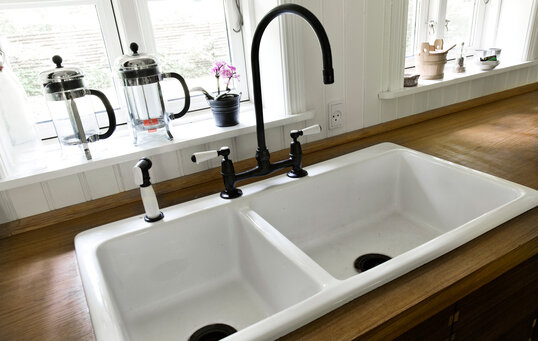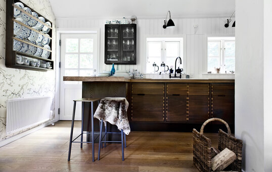 - Vi ville egentlig gå og renovere det hele lidt hen ad vejen, men vi blev grebet af det, og så gik det pludselig stærkt. Jeg drømte om, at køkkenet skulle være lavet af træ. Det er så smukt og levende, og vi havde ikke set et køkken, der var, som vi ville have det. Så dette køkken er faktisk sprunget ud af vores fantasi i tæt samarbejde med Kaptajnen, som er en af vores gode venner, der er snedker, fortæller Thomas Rode.