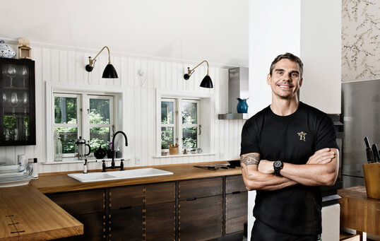 Kører du lidt længere nordpå til Tikøb i Nordsjælland mellem birke- og fyrretræer og inde i et friskmalet sort sommerhus findes en helt anden køkkenstil. Her holder Thomas Rode, kok og tidligere køkkenchef i Kong Hans Kælder nemlig til.