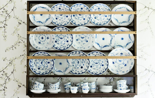 - Både Tilde og jeg har en svaghed for porcelæn, så derfor dekorerer den vores væg