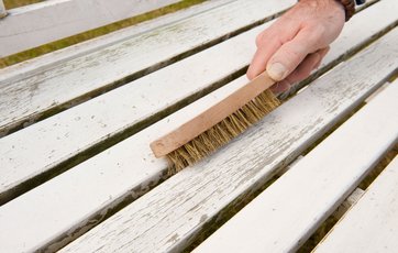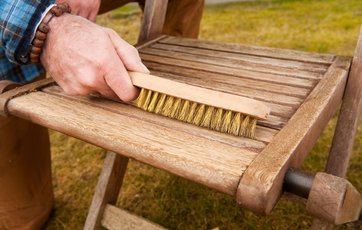 Hvis havemøblerne er af hårdt træ som teak og mahogni, er en børste med stålhår bedst til at fjerne skidt og snavs mellem lamellerne på sæde og ryglæn.