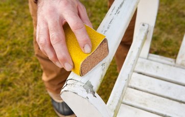 Slib møblerne med sandpapir korn 120. Brug grovere sandpapir, hvis der er store ridser og hakker. Slib med årerne på begge sider af sæde og ryglæn, altså på undersiden.