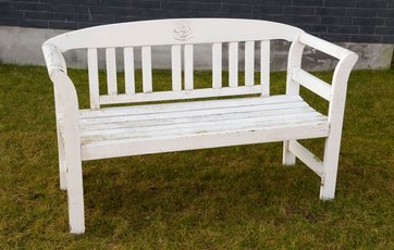 Så er havebænken blevet hvid og flot igen, og er nu klar til endnu en sæson i solen.