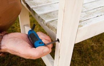 Husk at efterspænde bolte og skruer, så havemøblerne ikke er vakkelvorne.