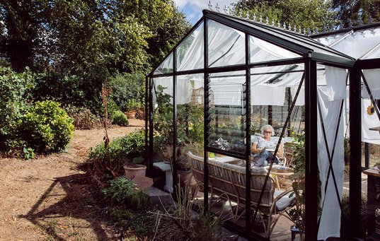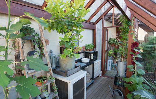 - Udnyt et uopvarmet drivhus. Fra maj kan du potte rabarber eller stauder, roser, krydderurter m.m. og placere dem i drivhuset.