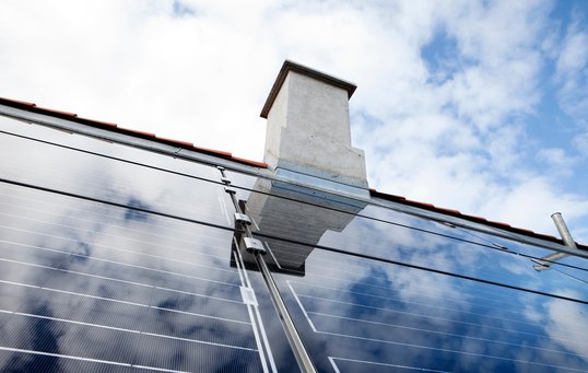 I dag spejler hvide skyer sig i det 40 kvadratmeter store solcelleanlæg, der nu er en del af den sydvendte tagflade på etageejendommen. Størstedelen af strømmen fra panelerne går til foreningens to vaskemaskiner og tørretumbleren, der i hvert fald kører et par timer om dagen.