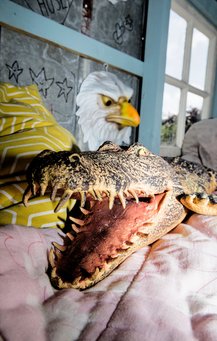 Familien valgte at beklæde skelettet med gamle pandeplader.
