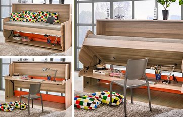 Hvis du ønsker at kombinere hjemmekontor og gæsteværelse, eller har et børneværelset i den mindre ende af skalaen, kan en vægseng med indbygget skrivebord være et fornuftigt valg. Skrivebordet forbliver i vandret position, når sengen slås ud, så du behøver ikke at pakke dine ting sammen, når det er tid til at tælle får.
