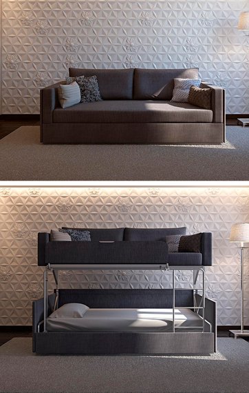 Twinny-sofaen er blevet lidt af et viralt hit på internettet og med god grund. Sofaen fra den græske møbelproducent Proteas er nemlig en transformer af rang, der i løbet af få sekunder kan forvandles til en køjeseng for to. Prisen ligger på 1.970 euro (omkring 14.700 danske kroner).