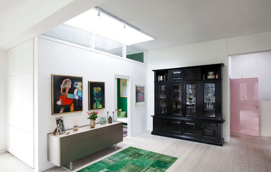 Indendørs vinduer kan sidde over døre som her, men de kan også placeres i en væg mellem to rum. Foto: Thomas Hjort, m4 arkitekter