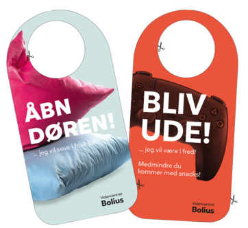 Det er budskabet på doorhangeren, som du kan printe og hænge på døren. Så kan resten af familien se, når du vil være i fred, og du kan blive mindet om at åbne døren om natten.