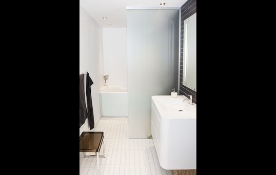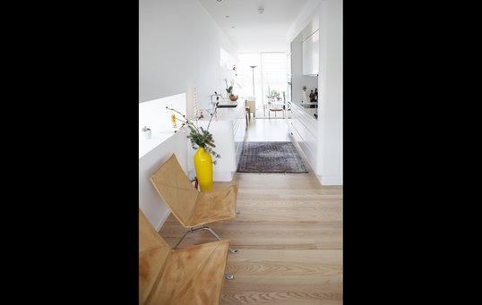 Gulvbelægningen er jævn, fast og skridsikker, der er brede passager og godt med frirum, så du – hvis det skulle blive nødvendigt - kan manøvrere rundt med en stok, rollator eller kørestol i hele boligen – inklusive badeværelset.