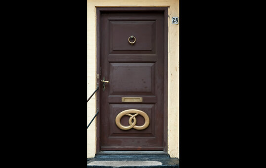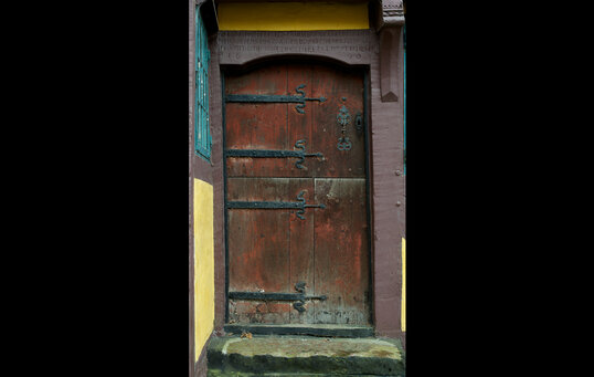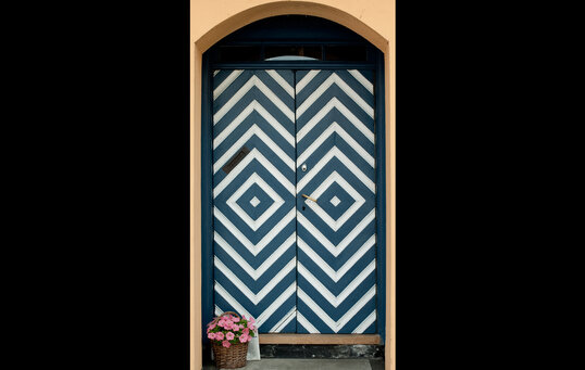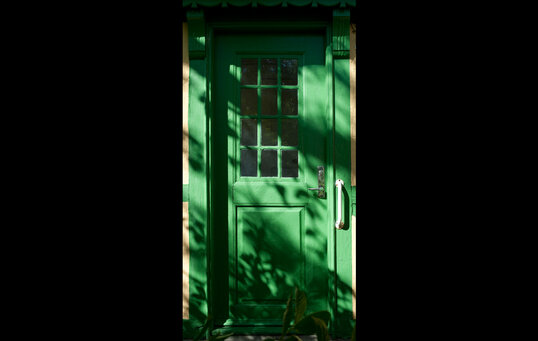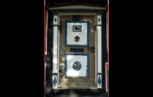 Hun lejer huset ud og bor selv i et andet hus i en sidegade. Hvert andet år maler hun møjsommeligt hoveddøren på det lille hus med linoliemaling, aldrig alkyd- eller plastmaling. Og guldmalingen påføres sirligt ornamenterne på døren.