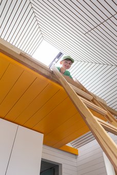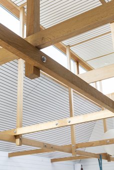 For at holde lyskassen oppe har det krævet en særlig loftkonstruktion, som Peter har valgt at blotlægge.