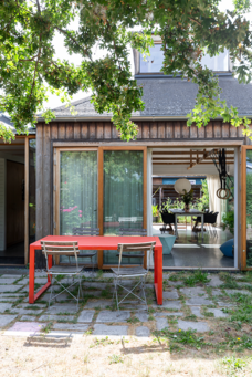 Egetræet går igen i vinduer og døre. De smarte foldedøre, der sørger for, at alrummet kan åbnes helt op, er fra Lacuna på Fyn.