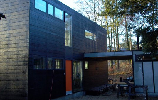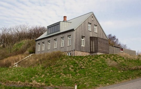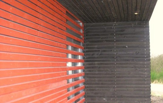 Facade med både oliebehandlet og malet træværk. Der er flot harmoni mellem farverne, og den canadiske arkitekt Todd Saunders har opnået en smuk æstetisk facade, der træder i karakter. Foto: Todd Saunders.