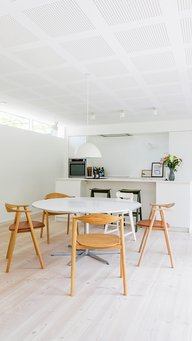 – Normalt tænker jeg, at vores hus er et ganske almindeligt hus. Men når jeg kommer hjem efter at have besøgt andre, kan jeg godt mærke, at alt her bare er pænt og fungerer. Vores dagligdag og vores liv fungerer, for alt er tænkt ind, og der er en tanke med alle tingene. Vi vidste præcis, hvor vores møbler og ting skulle være, da vi flyttede ind, for huset er jo lavet til os, fortæller Marie og fortsætter: