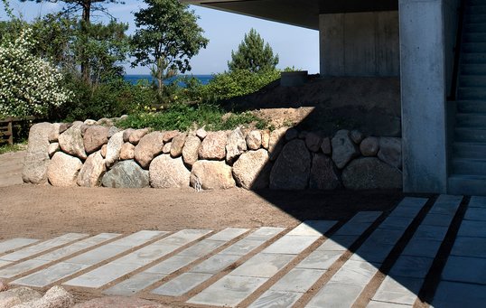 Det var vigtigt for familien, at huset ikke kom til at 'larme' for meget, og derfor er det integreret i naturen ved bl.a. ikke at have en decideret have, men i stedet for lade strandens kampesten og marehalm dominere.