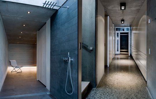 Ved at lade materialerne være gennemgående både ude og inde, har parret skabt en konsekvent og kompromisløs stil, der forener ønsket om at være tæt på naturen i raffinerede omgivelser. De store vinduer er med til at understrege dette valg ved at næsten at ophæve overgangene mellem ude og inde.
