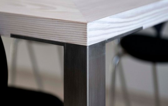Den samme tanke gjorde sig gældende i køkkenet, og her har Bygholm Inventar skabt et integreret udsugningssystem ved at placere rørføringen fra gulvet inde i køkkenelementerne. På den måde holdes støjniveauet på et minimum, og køkkenet er ikke skæmmet af en stor emhætte.