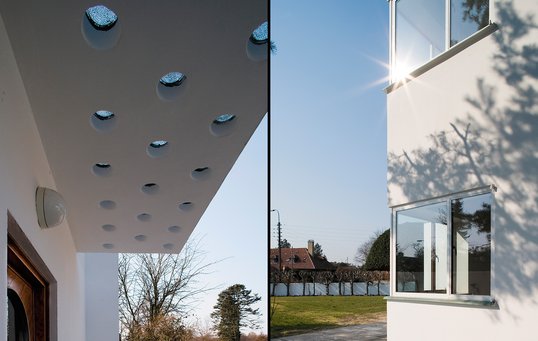 Selvom huset rummer aspekter fra den borgerlige villa, peger det også fremad mod nye tider. Ventilationsanlæggene under vindueskarmene, de særlige messingbakker til urtepotter, stålbordpladerne i køkkenet og den skibsagtige jerntrappe til tagterrassen er klare moderne elementer.