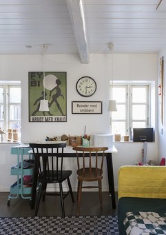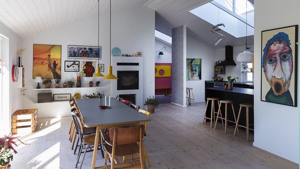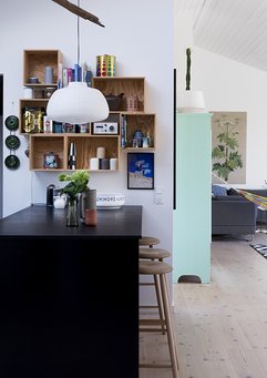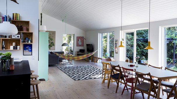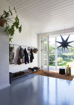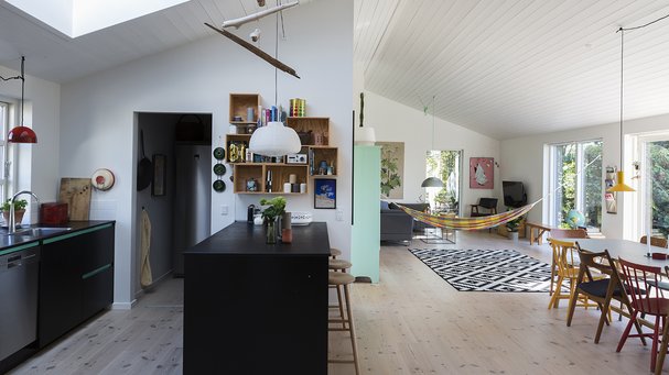- Bygger du nyt til gammelt, så forsøg ikke at skjule det nye byggeris hovedlinjer ved at få det til at se gammelt ud, men gør en dyd ud af kontrasten. Så kan der skabes lighed og sammenhæng i detaljer som fx materialer indendørs og farver på lofter og vægge.