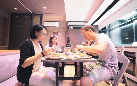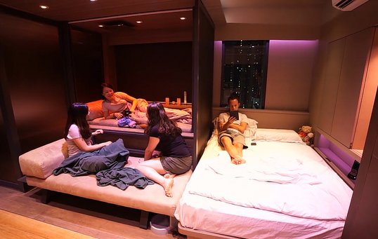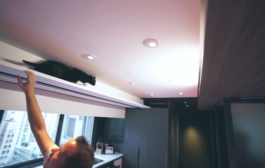 Hong Kong er en af verdens dyreste byer at bo i, så da kæresteparret Michelle Tennant og Andy Knight gik på jagt efter et fælles hjem i centrum af storbyen, strakte deres budget kun til en lejlighed på beskedne 29 m2. De kontaktede derfor arkitektfirmaet LAAB for at få hjælp til at forvandle deres nye bolig til et sted, hvor der både var plads til gæster og deres tre katte. Ønskelisten var alenlang: rummeligt køkken, stort badekar, hjemmebio, motionsrum, kattevenlige områder og masser af opbevaringsplads.