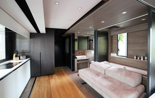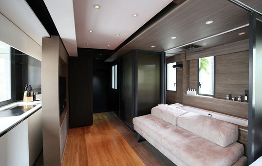 Et eksempel på dette er badet, der kan agere almindeligt badekar. Området kan separeres fra resten af badeværelset og lejligheden, så en person kan tage bad, mens en anden bruger toilettet. Men badekarret kan imidlertid også forvandles til en sofa, hvor man for eksempel kan hænge ud med vennerne og se film, ligesom rummet kan omdannes til et gæsteværelse med seng, der kan isoleres fra resten af lejligheden. Man kan også kombinere funktioner og for eksempel sidde i badekarret og se fjernsyn, eller vært og gæst kan sidde i hver deres seng og se film.