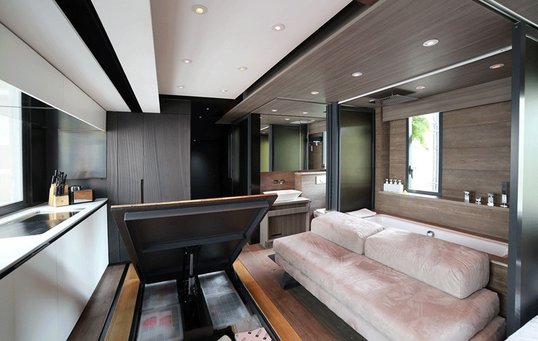 For at realisere parrets ambitiøse planer måtte LAAB tænke ud af boksen, og det tog hele 40 designforsøg og en masse eksperimenter, før man fandt den optimale løsning. I stedet for at se lejligheden som et statisk rum, inddrog arkitekterne tid som en fjerde dimension. Det betyder, at lejlighedens elementer kan have forskellige funktioner, afhængigt af hvad der er brug for på det pågældende tidspunkt.