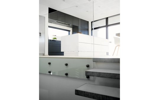 Betina Flies har ikke gode erfaringer med at bruge fiberbeton, men bruger i stedet kompositbeton, der består af kvartsand/natursten, der blandes med epoxy. Det gør, at betonen ikke slår revner, er resistent over for kalk og er meget rengøringsvenlig.