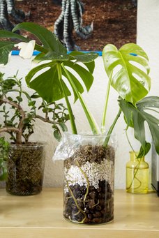 – Det bruger jeg stort set ikke. Man kommer let til at overvande, når planterne står i jord, og der kan også komme skadedyr. I stedet dyrker jeg i et plantekrukkesubstrat, Lechuza Pon, der indeholder gødning. Desuden dyrker jeg også flere stueplanter i vand, fortæller Stinne Piotrowsky.