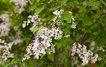 Denne smukke syren kan blive helt op til seks meter høj. Den har velduftende hvide blomster, der kommer i juni.