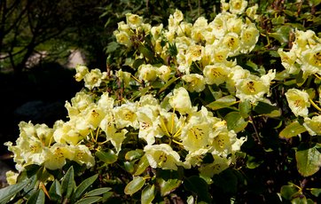 Dette er en af de bedste, smukkeste gule rododendron. Wardii er en vildart fra Tibet, og blomsterne er gule og skålformede og undertiden med rødligt midt i blomsten.