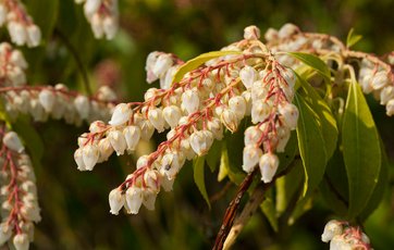 Busken eller det lille træ får klokkeformede blomster, der varierer mellem hvid og rosa i farven.