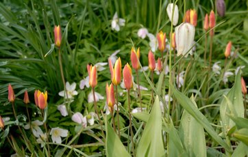 Kirgisisk tulipan, Tulipa turkestanica, blomstrer allerede i februar-marts, hvis vinteren har været mild. Det er en vild art, som stammer fra bjergeegne i Centralasien. Bladene er grågrønne og smalle, blomsterne cremegule og stjerneformede. Kræver en meget veldrænet jord og solrig placering. Den bliver kun 10-20 cm høj. Blomstrer igen år efter år, hvis den ellers trives.
