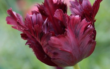 Black Parrot er en såkaldt papegøje-tulipan med trævlede, lidt forvredne kronblade i en flot sort farve. En temmelig gammel sort, som bliver 40-50 cm høj og blomstrer i maj. Kræver jævnlig fornyelse.
