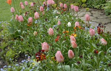 Apricot Beauty spiller her fint sammen med gyldenlakker og forglemmigej. Den har sarte abrikosfarvede blomster, som kommer igen i flere år. Blomstrer allerede i slutningen af april og bliver omkring 45 cm høj. En tidlig, enkel tulipan.
