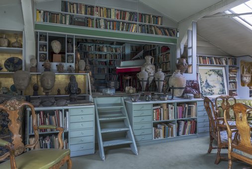 Den fortættede hulestemning er skabt af Bjørn Wiinblad, der boede i huset fra midten af 1960’erne og frem til sin død i 2006. Han var én af landets mest produktive kunstnere, og indretningen af hjemmet bærer i dén grad præg af hans foretagsomhed og passion for dekoration, pyntede detaljer, farver, især blå og grøn, Asien, musik og litteratur.