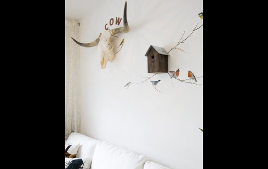 Camilla har interesseret sig for japansk popkultur, siden hun var barn, og efter et 5 måneders studieophold i Japan, gik hun i gang med at indrette sin nye lejlighed stærkt inspireret af det japanske fugleliv, landets farverige blomsterflora samt de flotte, østerlandske mønstre.