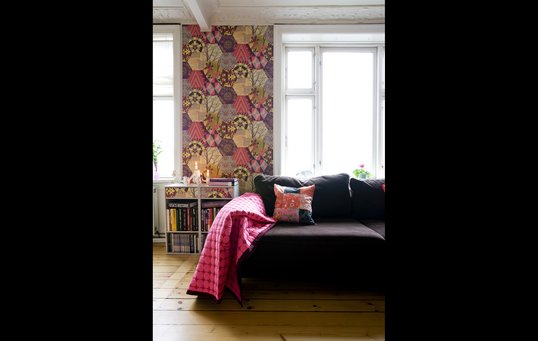 På Frederiksberg bor Marie Louise, der til daglig er selvstændig frisør. Hun bor sammen med sin kæreste i en 2 værelses lejlighed på 65 m2, og indretningen bærer præg af, at hun er vild med mønstre og tapeter.