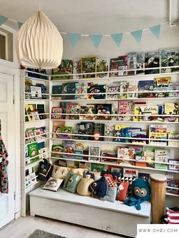 - Tallerkenhylder er de senere år blevet populære i børneværelserne til opbevaring af bøger. Det gør bøgerne indbydende, da børnene kan se forsiden af bøgerne fremfor bogryggene.