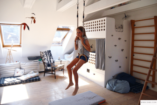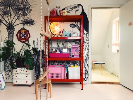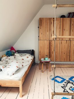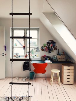 Da mange børn opholder sig en del på værelset, kan det være fint, hvis der er plads til fysisk aktivitet, fx i form af en klatrevæg. Du kan også sætte en ribbe eller nogle gymnastikringe op.