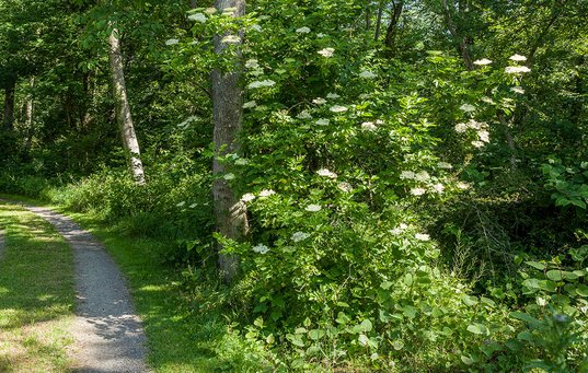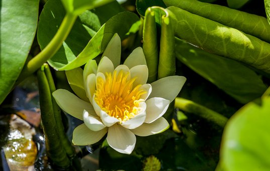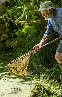 – Søerne med deres dyreliv – salamandre, frøer og forskellige insekter – er spændende, og sjovt nok plages vi ikke af myg på trods af så meget vand. Det skyldes formentlig de mange småfugle, der også holder til her. Søerne giver en del arbejde, når jeg skal holde dem fri for begroning, og det tager tid at fjerne andemad. Men det er det hele værd, når man kigger på det smukke vandspejl med åkander og andre vand- og sumpplanter. Sidste år holdt et par bramgæs også til i en af søerne – vi håber, de kommer igen i år.