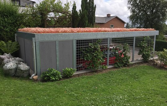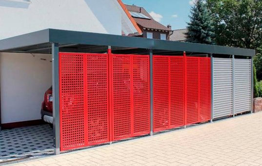 Overvej at integrere skur, cykelparkering og afskærmning af skraldespande i samme konstruktion. På den måde kan du på én gang skjule alle de genstande, der typisk roder foran huset og skabe et flot og ryddeligt indgangsparti.