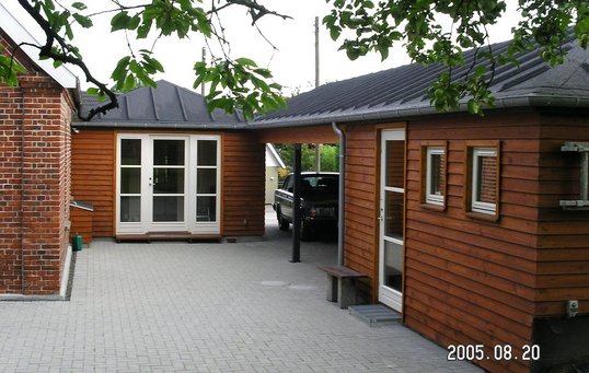 Carporten kan også være bygget sammen med et udhus til opbevaring af cykler, brænde eller haveredskaber.