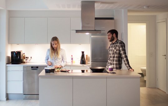 Kæresteparret endte med at købe lejligheden og flyttede ind i sommeren 2016. I løbet af de første måneder fik de en grundig introduktion til bygningens tekniske installationer og til to softwareprogrammer, så de selv kan holde øje med bygningens produktion af solenergi, energiforbruget pr. lejlighed og indeklimaet.